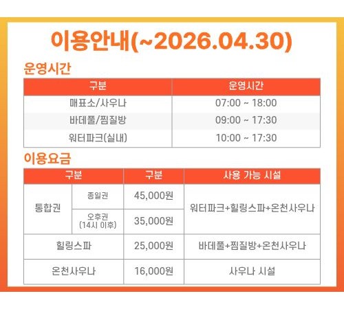 ● 쾌적하고 안전한 워터파크를 위해 아쿠아 슈즈 & 수영모 또는 모자 착용