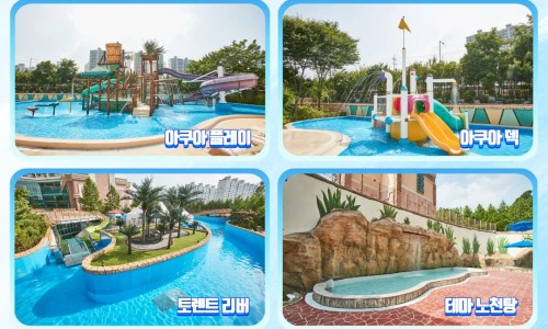 ● 어드벤처 플레이, 키즈풀 : 다양한 워터슬라이드, 물총, 버켓샤워 등 물놀이 시설이 가득한 공간 아이들의 창의력과 모험심을 키워주는 최고의 놀이존이며, 보호자 휴게 공간도 마련되어 있음