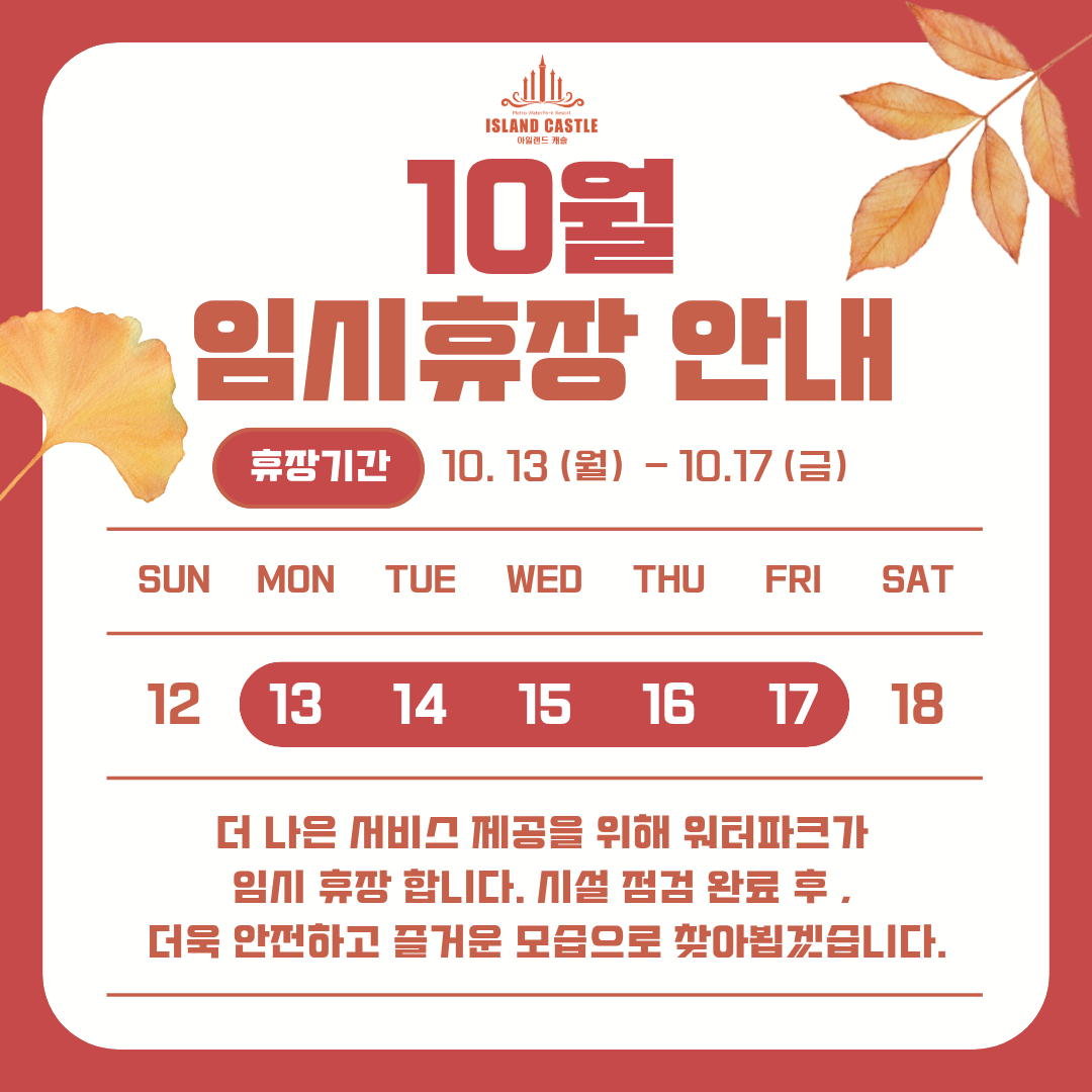 ☞ 휴장 기간:10월13일(월)~10월17일(일)